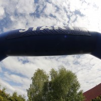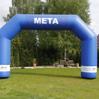 Brama dmuchana START/META to dodatkowy element nadający imprezie większego rozmachu i powagi. W prosty i szybki sposób oznacza się miejsce startu i/lub mety, co przyciąga uwagę i koncentruje uczestników wokół tego miejsca. Zamocowane na rzepach napisy można dowolnie wymieniać w razie potrzeb, a uchwyty pod główną częścią pozwalają dodatkowo podwiesić reklamę sponsora.